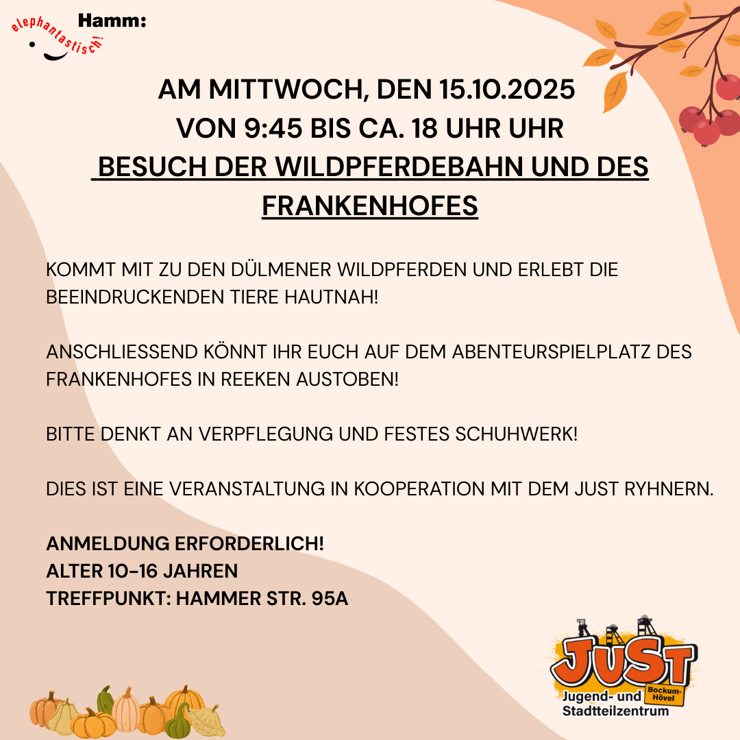 Unser Programm für die Herbstferien findet ihr auf Instagram und im Ferienspaßkalender der Stadt Hamm.